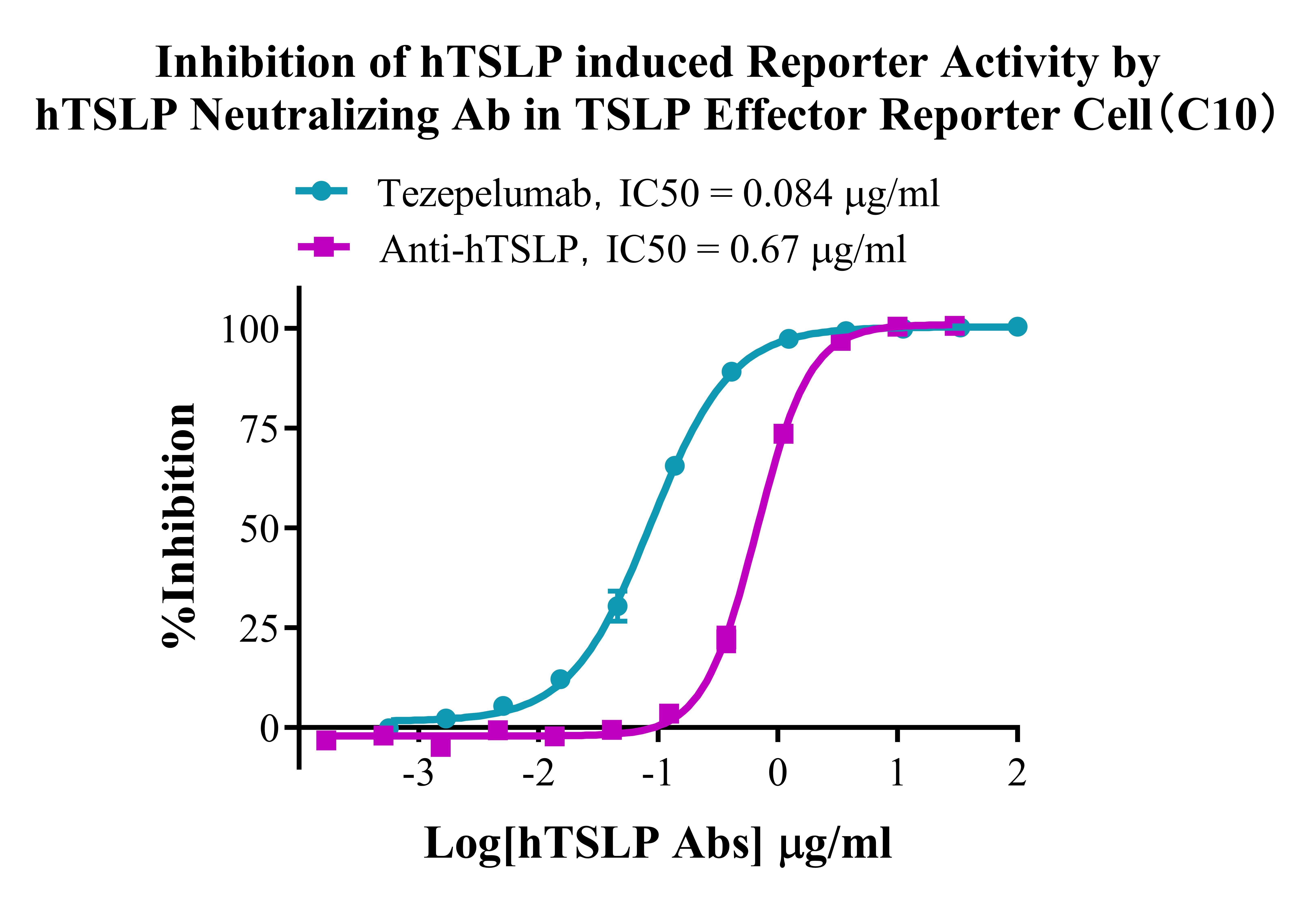 Figure 4. Inhibition of hTSLP induced Reporter Activiy by hTSLP Neutralizing Ab in TSLP Effector Reporter Cell(C10). |