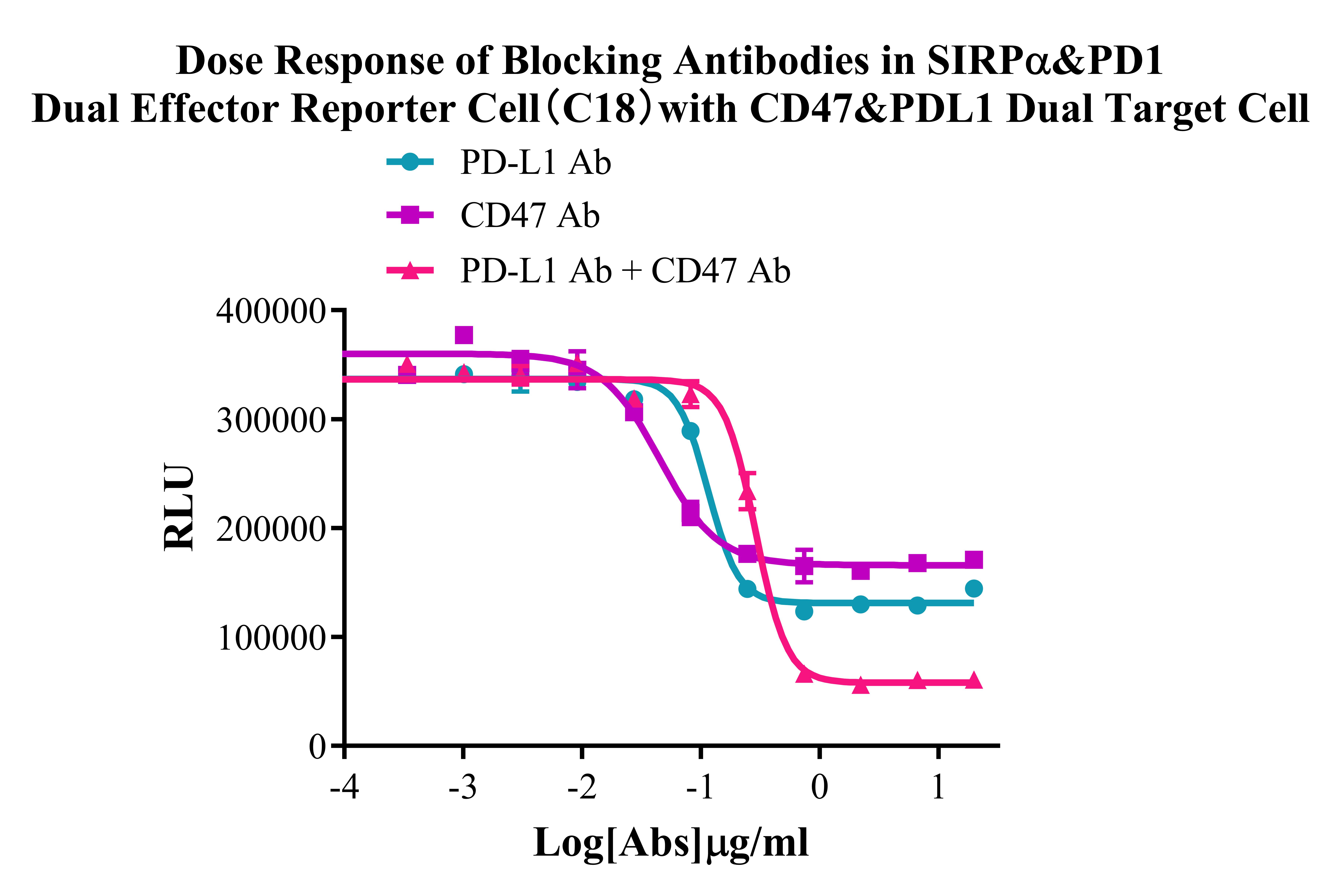 Figure 1. Dose Response of Blocking Antibodies in SIRPα&PD1 Dual Effector Reporter Cell(C18) with CD47/PD-L1 Dual Target Cell.