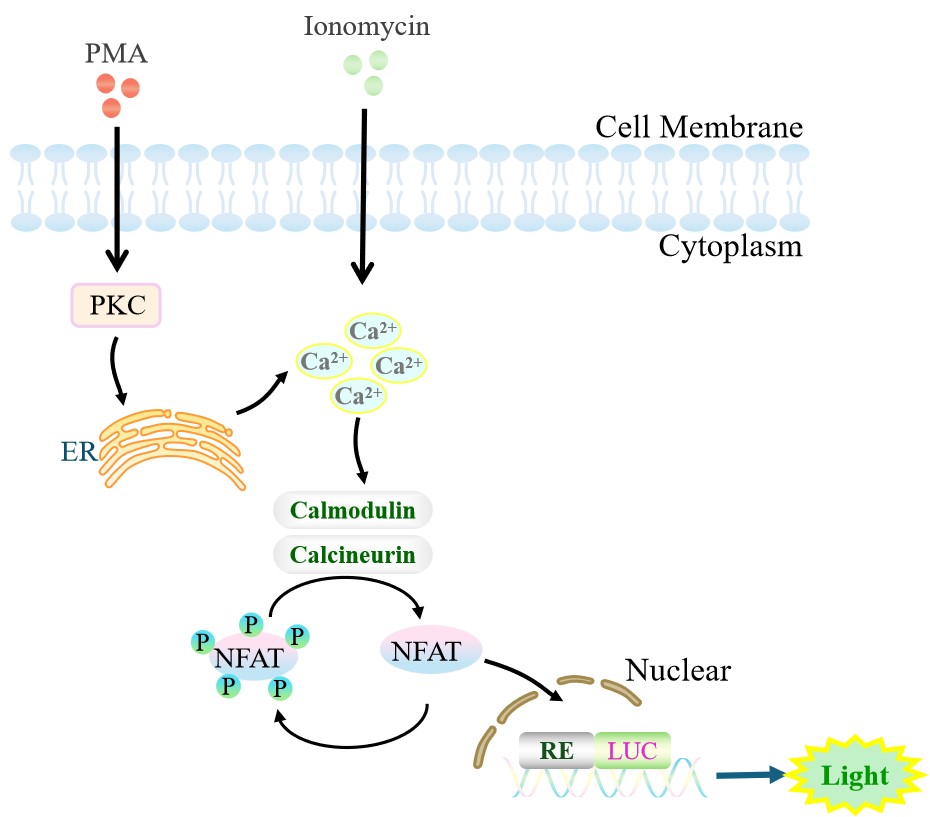 Figure 1. NFAT-Luc Jurkat 細(xì)胞模型原理圖 |