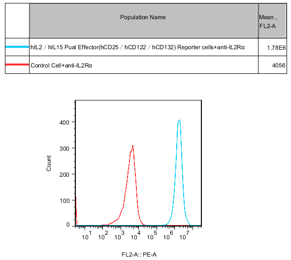 Figure 2. Recombinant hIL2/IL15 Dual Effector(hCD25/hCD122/hCD132) Reporter Cell constitutively expressing IL2Rα. |