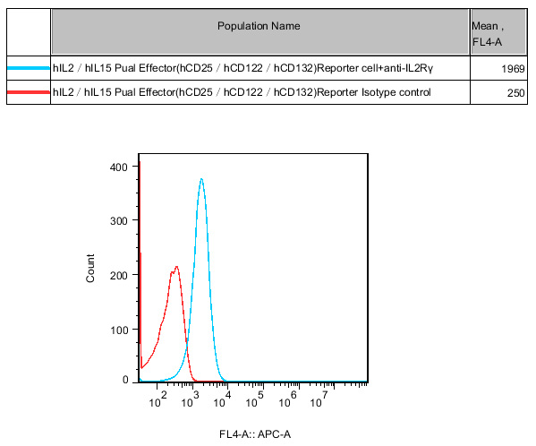 Figure 3. Recombinant hIL2/IL15 Dual Effector(hCD25/hCD122/hCD132) Reporter Cell constitutively expressing IL2Rβ. |