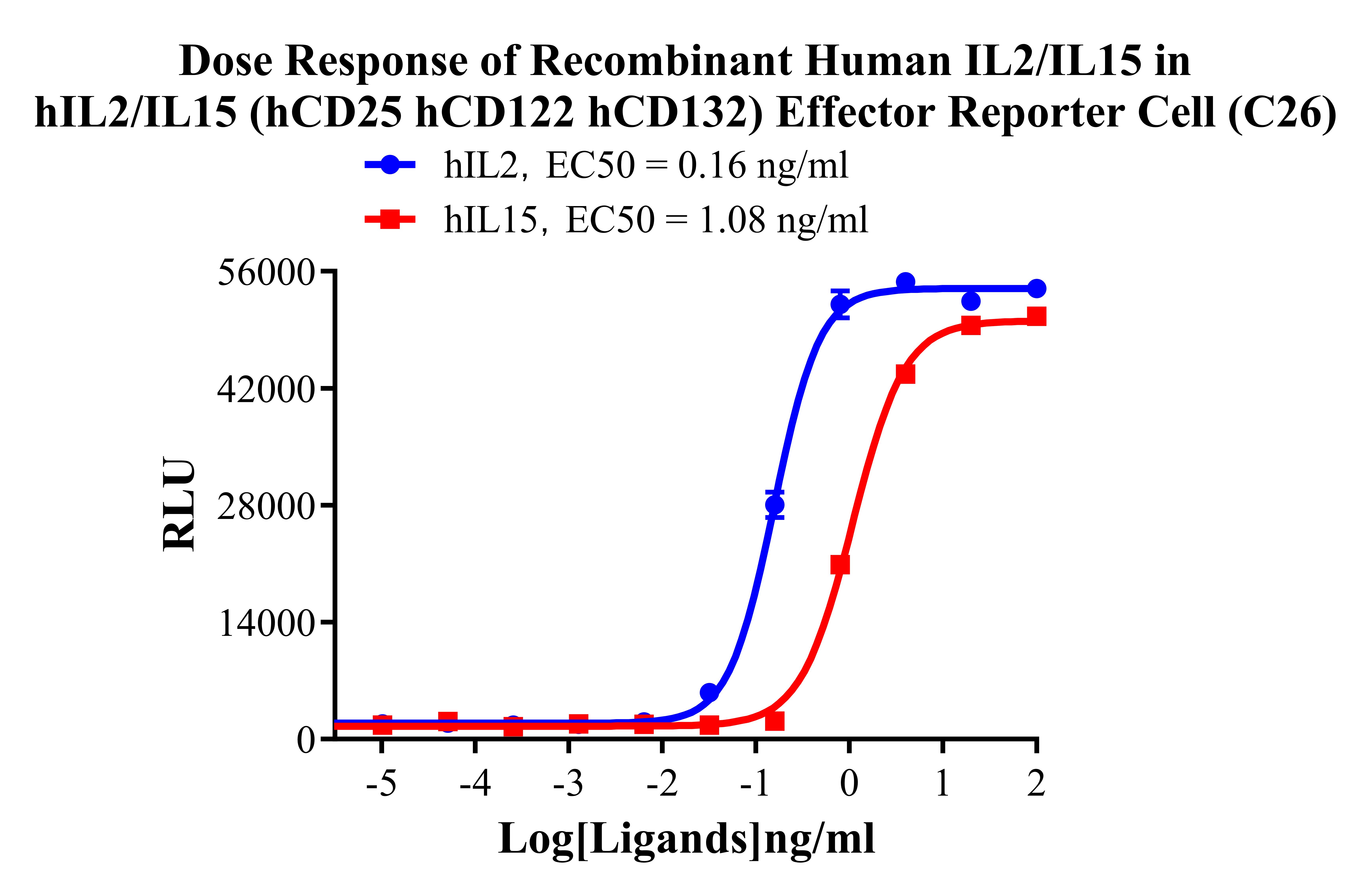 Figure 5. Dose Response of Recombinant Human IL2/IL15 in hIL2/IL15 (hCD25 hCD122 hCD132) Effector Reporter Cell (C26). |
