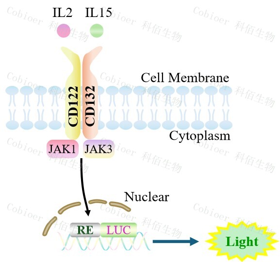 Figure 1. hIL2/IL15(hCD122 hCD132)Effector Reporter Cell 細胞模型原理圖