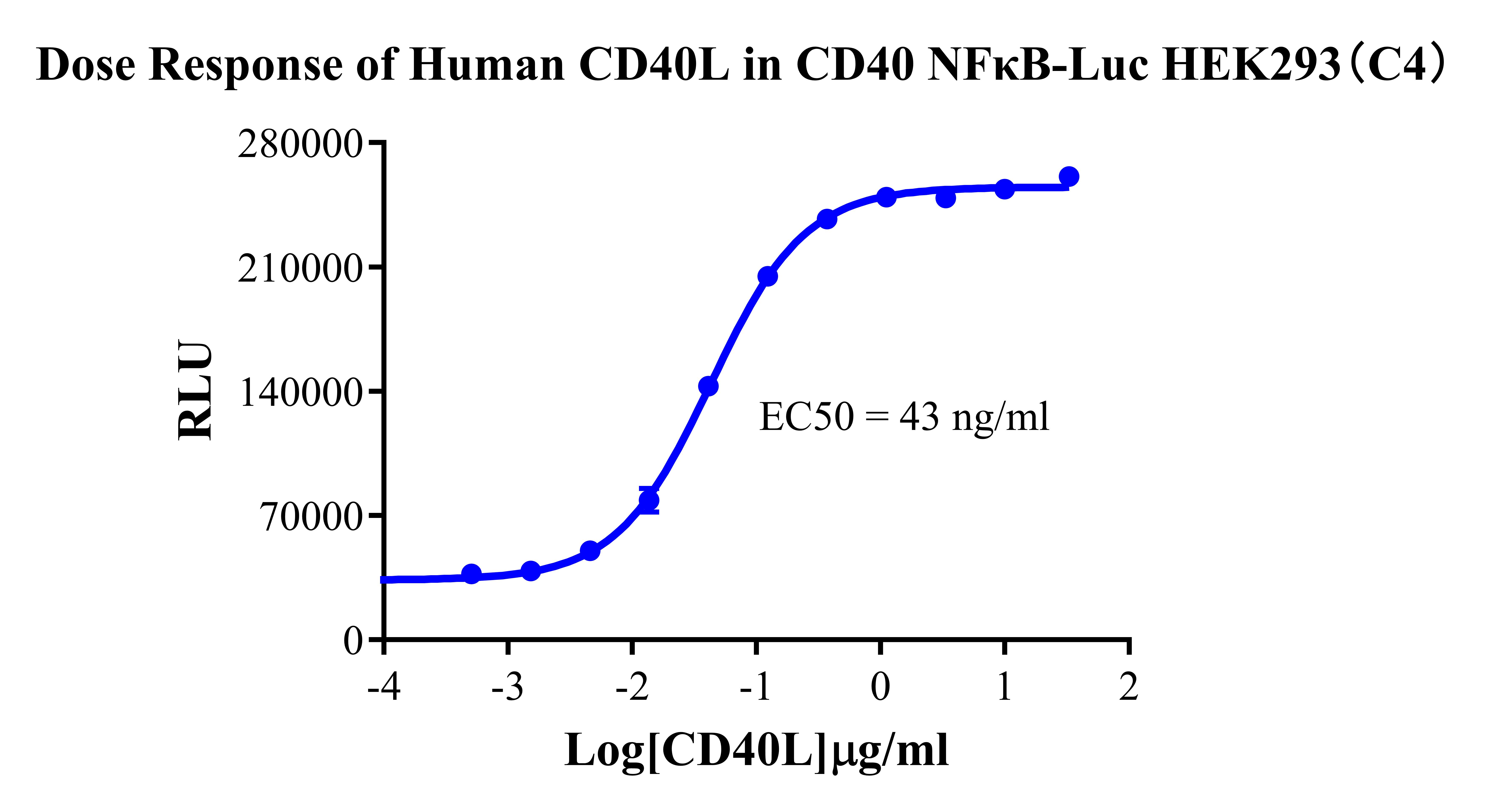 | CD40 是腫瘤壞死因子受體超家族(TNFRSF)成員,作為免疫調(diào)節(jié)的關(guān)鍵分子,廣泛 參與 B 細(xì)胞活化、抗原呈遞細(xì)胞(APC)成熟及 T 細(xì)胞免疫應(yīng)答。其配體 CD40L(CD154) 主要表達(dá)于活化的 T 細(xì)胞,通過(guò) CD40-CD40L 互作橋接先天性與適應(yīng)性免疫,是腫瘤免疫 治療、自身免疫病及感染性疾病的熱門靶點(diǎn)。 CD40 信號(hào)轉(zhuǎn)導(dǎo)主要利用 TNF 受體相關(guān)因子的銜接蛋白,導(dǎo)致經(jīng)典和非經(jīng)典 NFκB 通 路、MAPK、PI3K 和 PLCγ的激活。它們的激活導(dǎo)致特征性下游效應(yīng),包括轉(zhuǎn)錄激活、細(xì) 胞骨架重排和細(xì)胞存活。 |