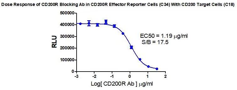 Figure 2. Dose Response of CD200R Blocking Ab in CD200R Effector Reporter Cells (C34) With CD200 Target cells (C18). |