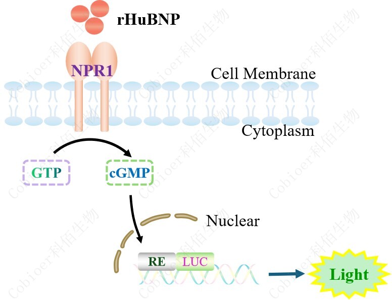 BNP/NPR1 Effector Reporter Cell 報告基因藥靶模型很好的模擬了體內(nèi) NPR1 的信號轉(zhuǎn)導過程,原理見下圖所示。![]() Figure 1. BNP/NPR1 Effector Reporter Cell 細胞模型原理圖 |