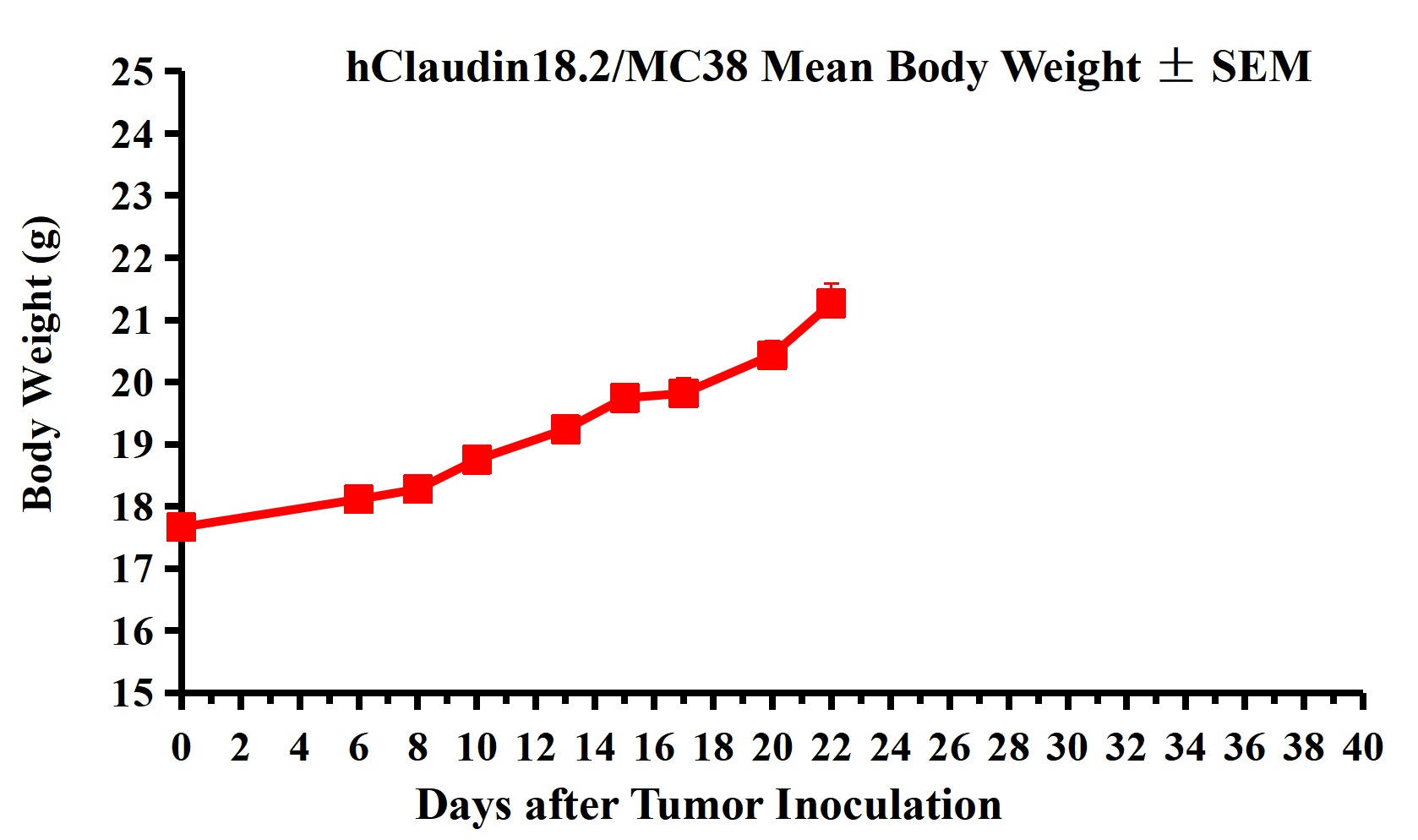 Figure 2. hClaudin18.2/MC38 Mean Body Weight ± SEM.