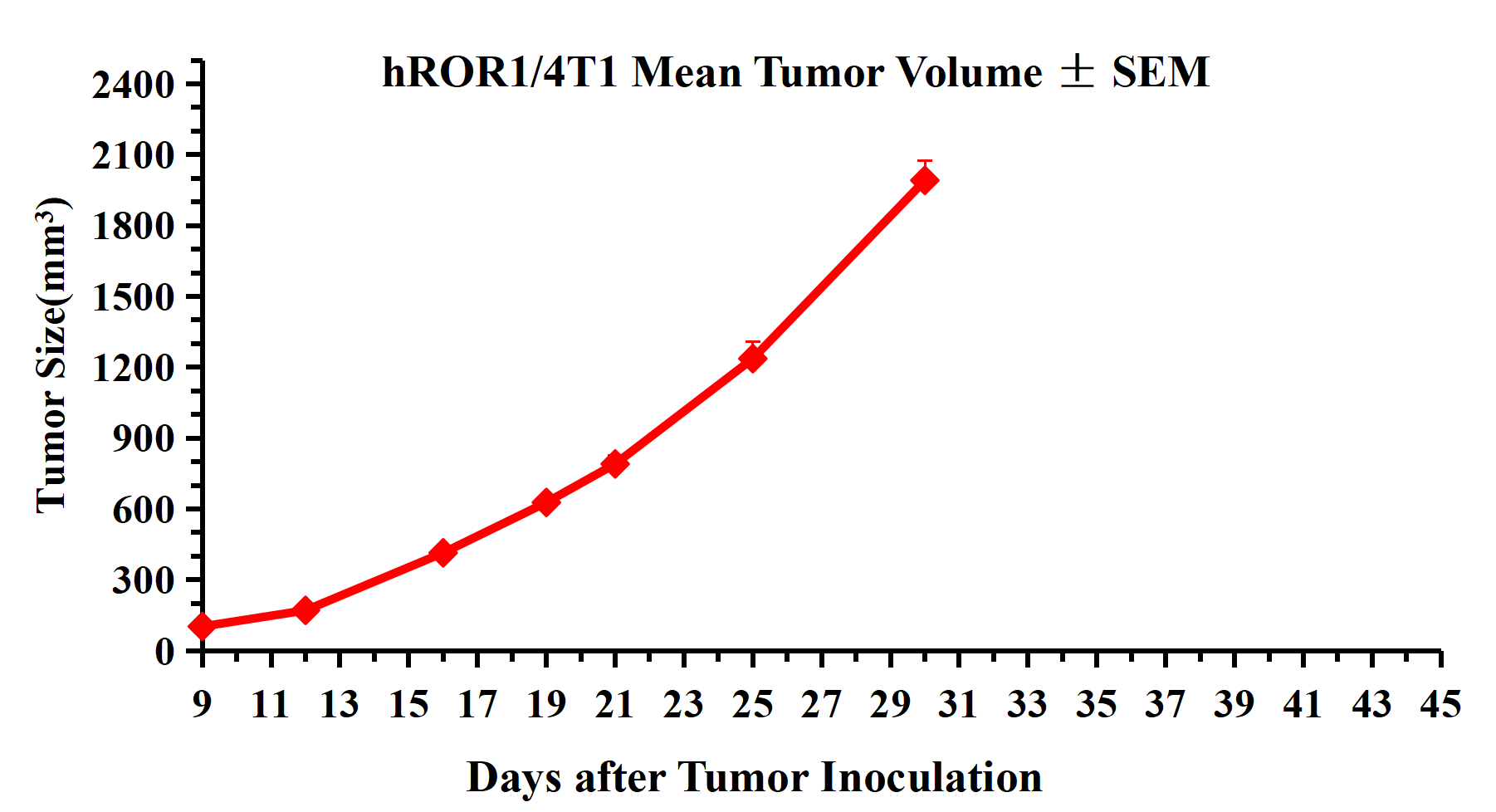 Figure 3.hROR1/4T1 Mean Tumor Volume ± SEM.