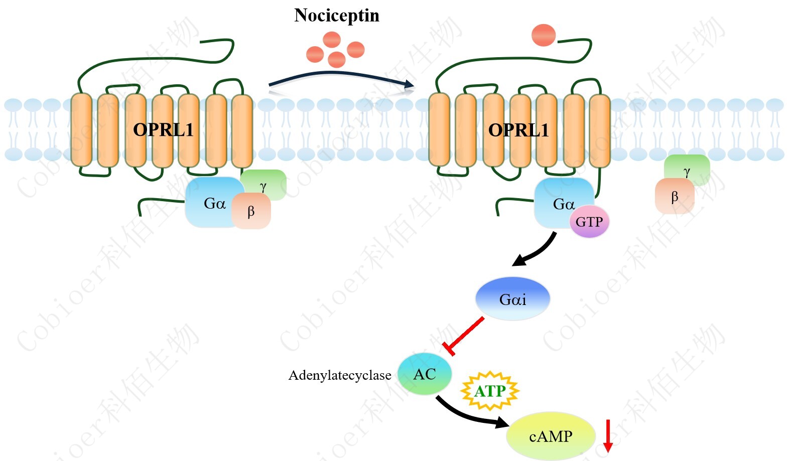 阿片受體家族包括κ-阿片受體(KOP)、 δ-阿片受體(DOP)、µ-阿片受體(MOP) 和痛覺肽阿片受體(NOP),均屬于 G 蛋白偶聯(lián)受體,主要通過偶聯(lián)下游 Gi 蛋白發(fā)揮功 能。NOP 也被稱為痛覺肽/孤兒蛋白 FQ (N/OFQ)受體或 kappa- 3 型阿片受體,是一種由 OPRL1 基因編碼的蛋白質。痛覺肽受體是 G 蛋白偶聯(lián)受體阿片亞家族的一員,其天然配體 是 17 個氨基酸的神經肽,稱為痛覺肽(N/OFQ)。阿片相關痛覺肽受體 1 (OPRL1)廣泛表達 于中樞神經系統(tǒng),包括海馬齒狀回、皮質區(qū)、紋狀體、丘腦和下丘腦。 |