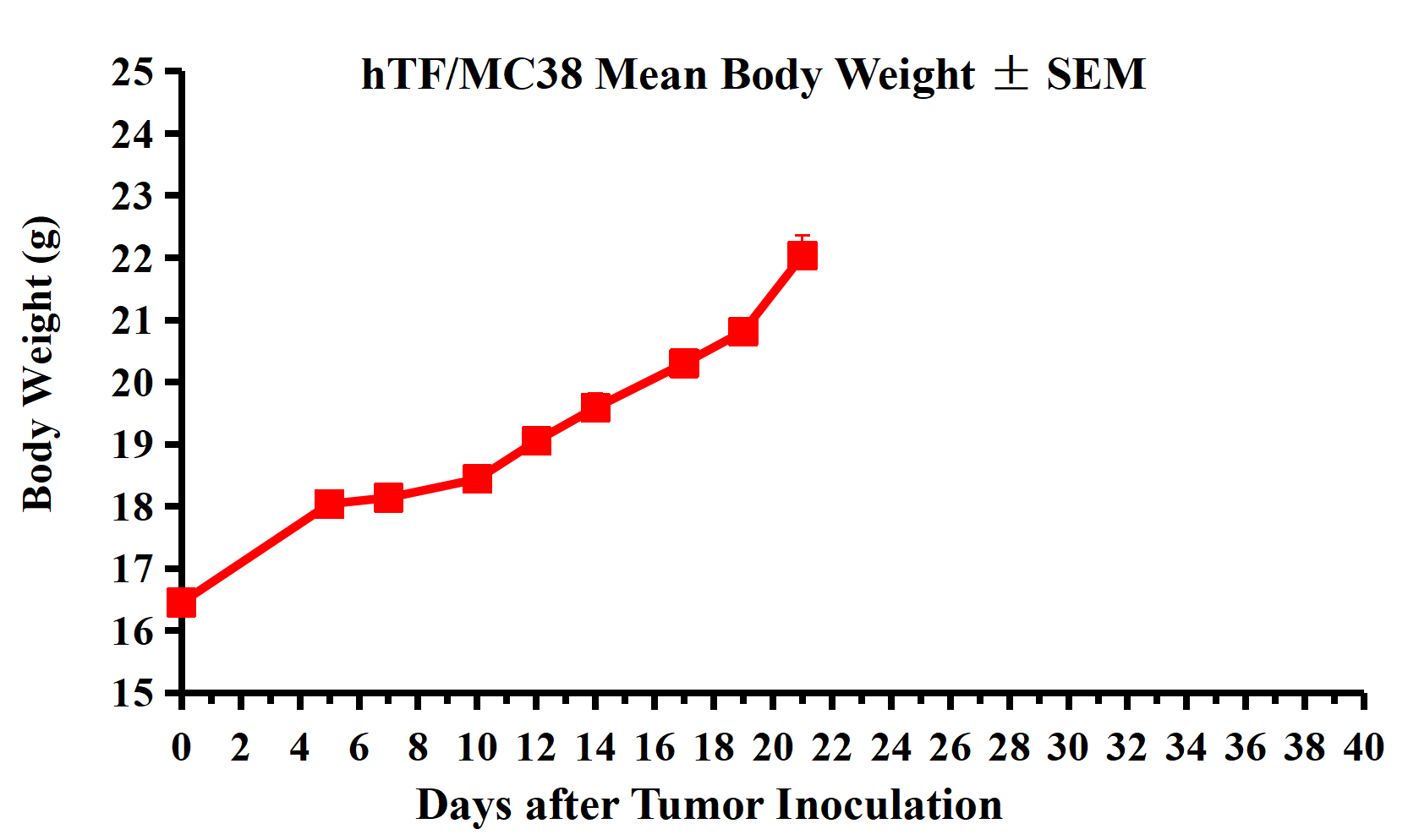 Figure 2. hTF/MC38 Mean Body Weight ± SEM.