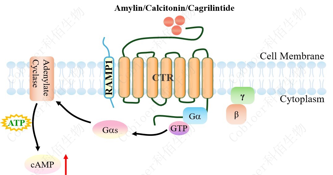 降鈣素基因相關肽(CGRP)家族包括 CGRP 本身、降鈣素(CT)、腎上腺髓質(zhì)素 (AM)和胰島淀粉樣肽(AMY)。 胰淀素(Amylin)受體的三種類型的已被確定,即 AMY1,AMY2 和 AMY3。 |