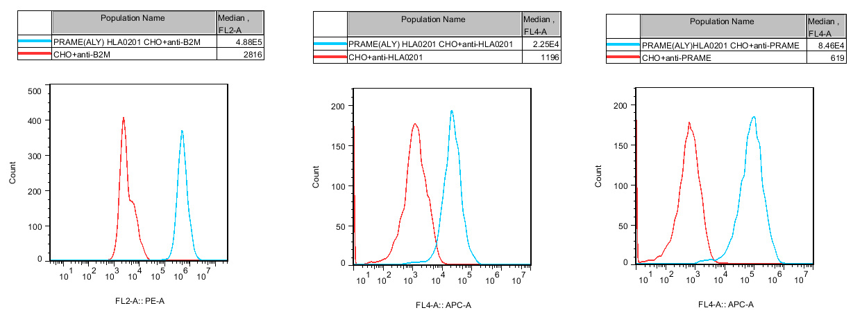 IV. Representative Data![]() Figure 1. Recombinant PRAME(ALY) HLA0201 CHO stably expressing B2M &PRAME & HLA0201. |