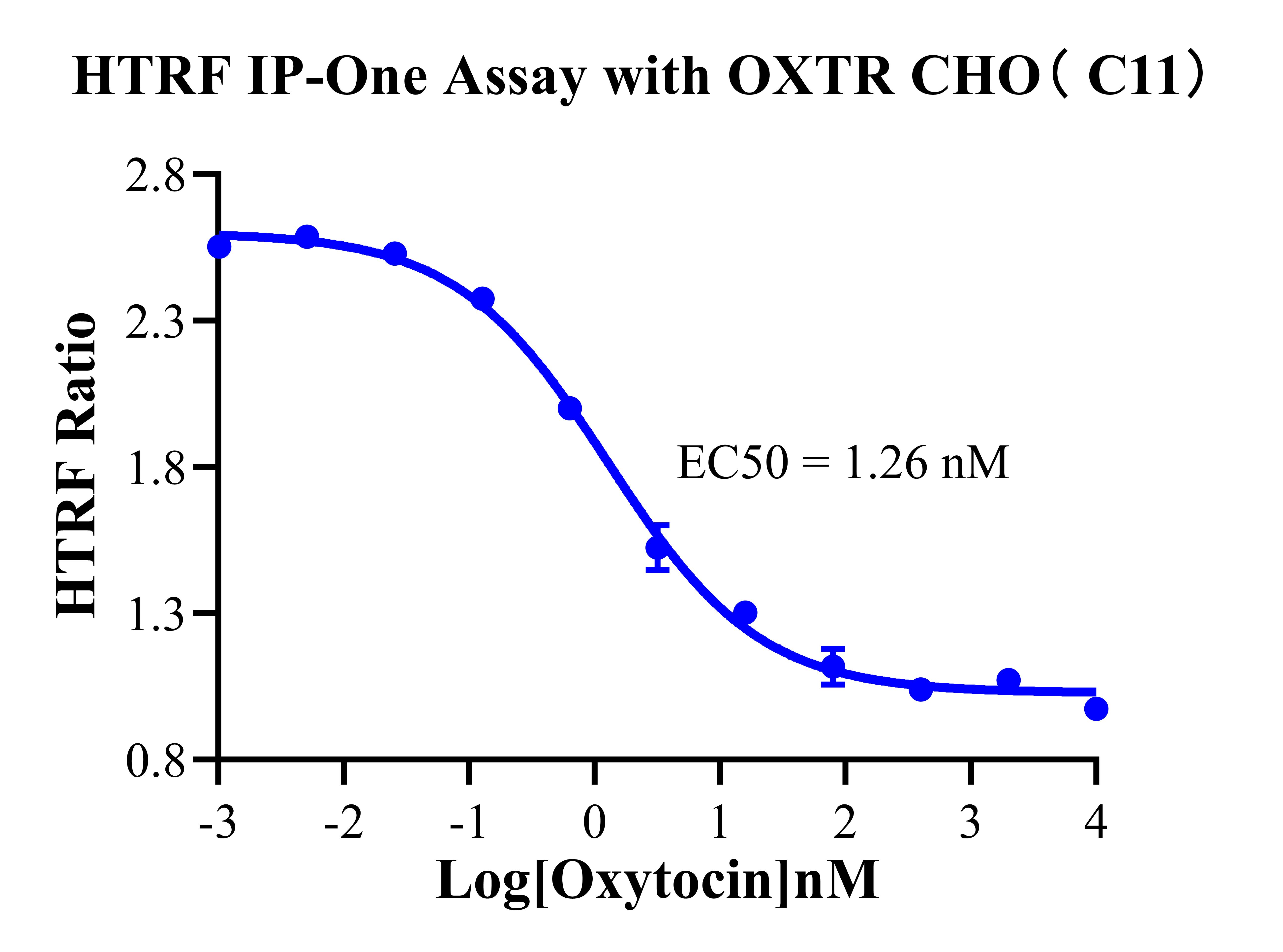 OXTR CHO 細(xì)胞藥靶模型很好的模擬了體內(nèi) OXTR 的信號(hào)轉(zhuǎn)導(dǎo)過(guò)程,原理見(jiàn)下圖所示。![]() Figure 1. OXTR CHO 細(xì)胞模型原理圖 |