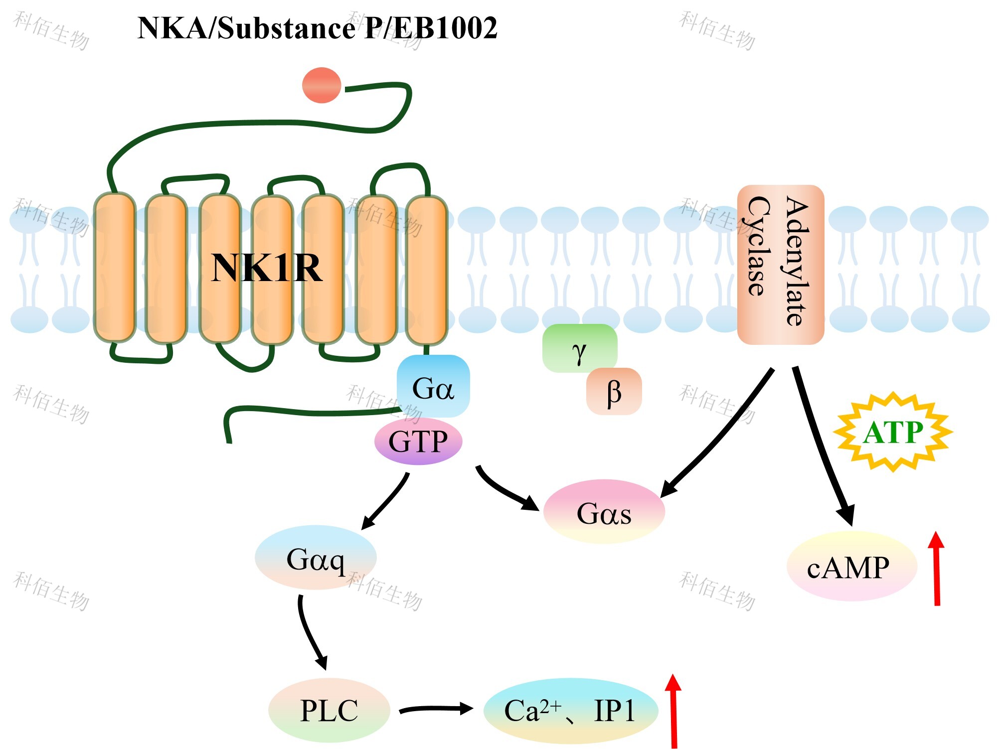 NK1R HEK293 細(xì)胞藥靶模型很好的模擬了體內(nèi) NK1R 的信號(hào)轉(zhuǎn)導(dǎo)過(guò)程,原理見(jiàn)下圖所示。