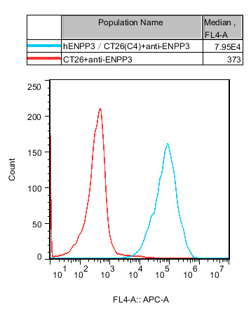 IV. Representative Data![]() Figure 1. Recombinant hENPP3/CT26 stably expressing hENPP3. |
