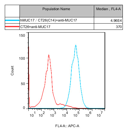 IV. Representative Data![]() Figure 1. Recombinant hMUC17/CT26 stably expressing hMUC17. |