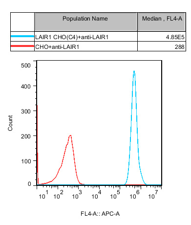 | LAIR1 CHO 細(xì)胞,在 CHO-K1 細(xì)胞的基礎(chǔ)上,穩(wěn)定表達(dá)人 LAIR1。 | |