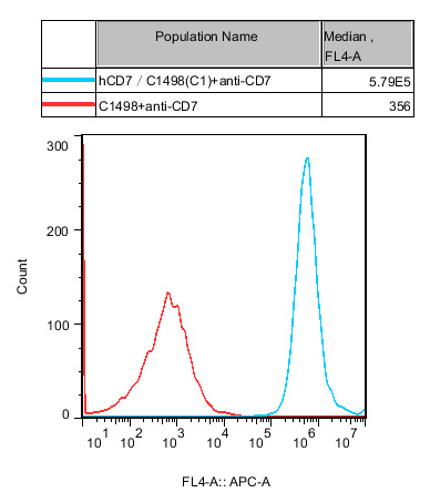 IV. Representative Data![]() Figure 1. Recombinant hCD7/C1498 stably expressing hCD7. |