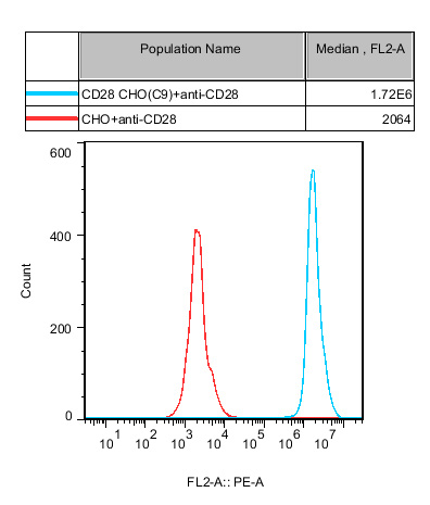 | CD28 CHO 細(xì)胞,在 CHO-K1 細(xì)胞的基礎(chǔ)上,穩(wěn)定表達(dá)人 CD28。 | |