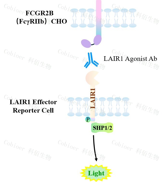 LAIR1 Effector Reporter Cell 報(bào)告基因藥靶模型很好的模擬了體內(nèi) LAIR1 的信號轉(zhuǎn)導(dǎo)過程,原理見下圖所示。![]() Figure 1.LAIR1 Effector Reporter Cell 細(xì)胞模型原理圖 |