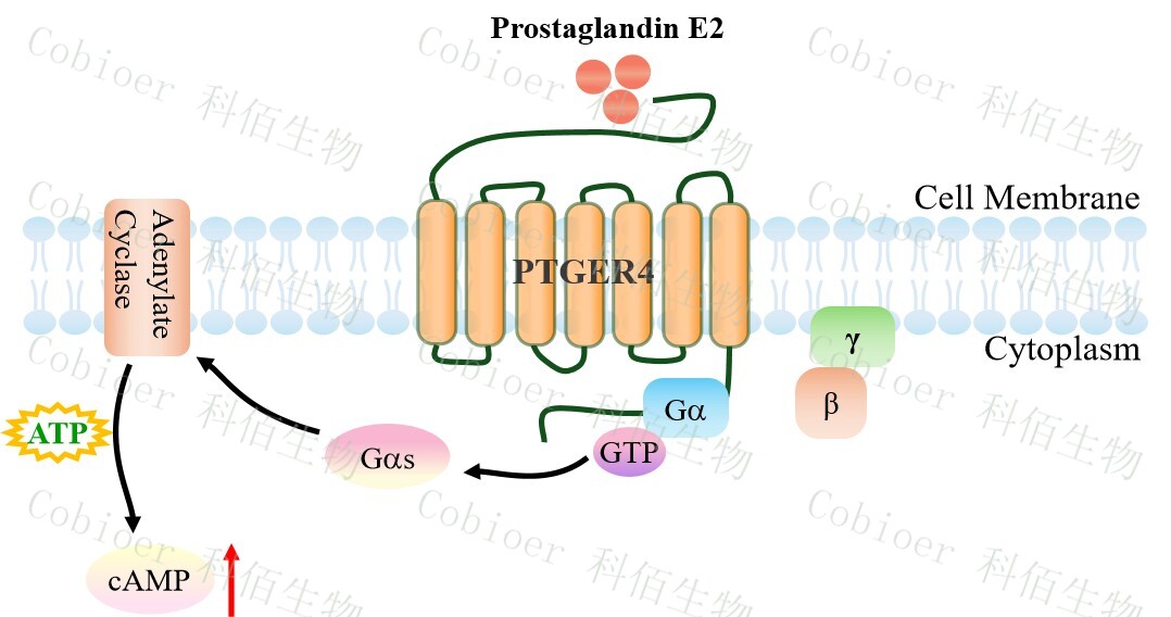 PTGER4 HEK293 細(xì)胞藥靶模型很好的模擬了體內(nèi) PTGER4 的信號(hào)轉(zhuǎn)導(dǎo)過(guò)程,原理見下圖所示。