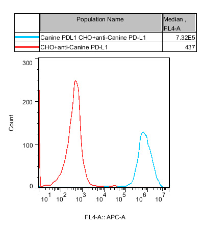| Canine PDL1 CHO 細(xì)胞,在 CHO-K1 細(xì)胞的基礎(chǔ)上,穩(wěn)定表達(dá)犬 PDL1。 | |