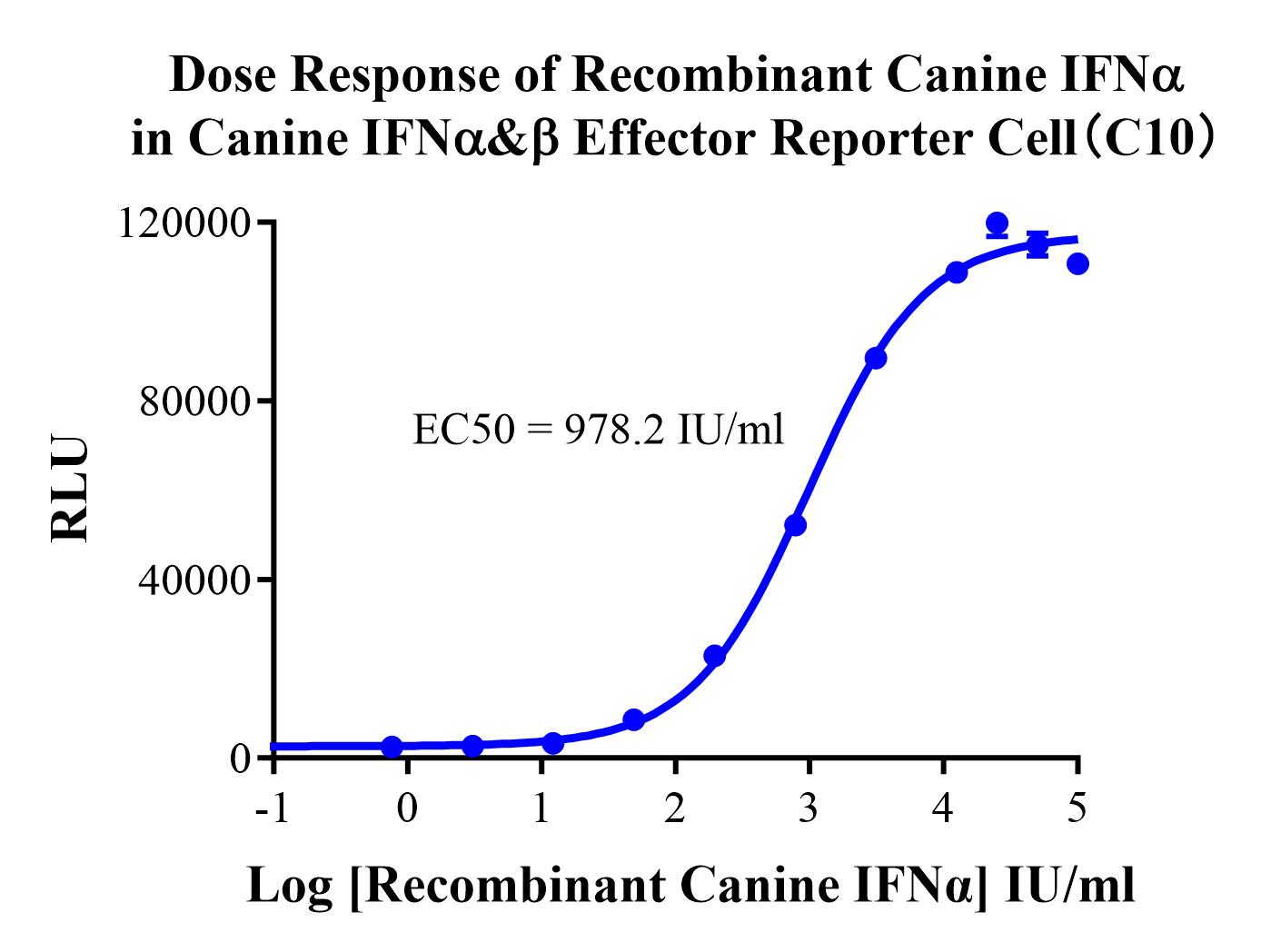 ![]() Figure 2. Dose Response of Recombinant Canine IFNa in Canine IFNα&β Effector Reporter Cell(C10). |