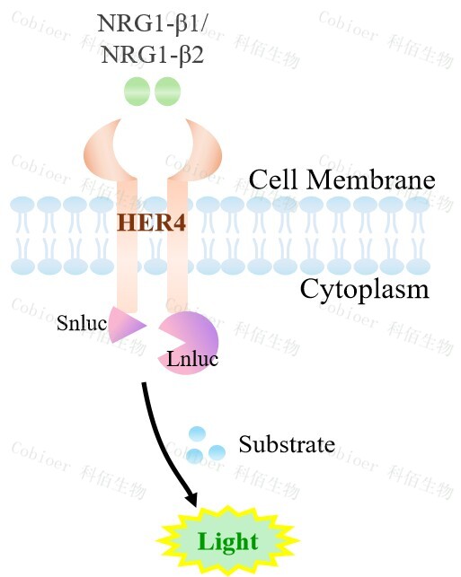 ERBB4(HER4) Dimerization CHO 報告基因藥靶模型很好的模擬了體內(nèi) ERBB4 的信號轉(zhuǎn)導(dǎo)過程,原理見下圖所示。![]() Figure 1. ERBB4(HER4) Dimerization CHO 細胞模型原理圖 |