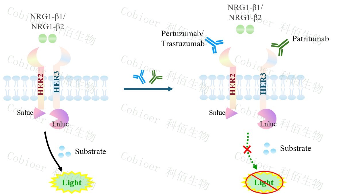 ERBB2&ERBB3 Dimerization CHO 報告基因藥靶模型很好的模擬了體內(nèi) ERBB2&ERBB3 的信號轉(zhuǎn)導(dǎo)過程,原理見圖所示。![]() Figure 1. ERBB2&ERBB3 Dimerization CHO 細(xì)胞模型原理圖 |