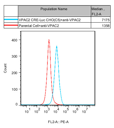 VPAC2 CRE-Luc CHO 報(bào)告基因藥靶模型很好的模擬了體內(nèi) VPAC2 的信號(hào)轉(zhuǎn)導(dǎo)過(guò)程, 原理見下圖所示。![]() Figure 1. VPAC2 CRE-Luc CHO 細(xì)胞模型原理圖 |