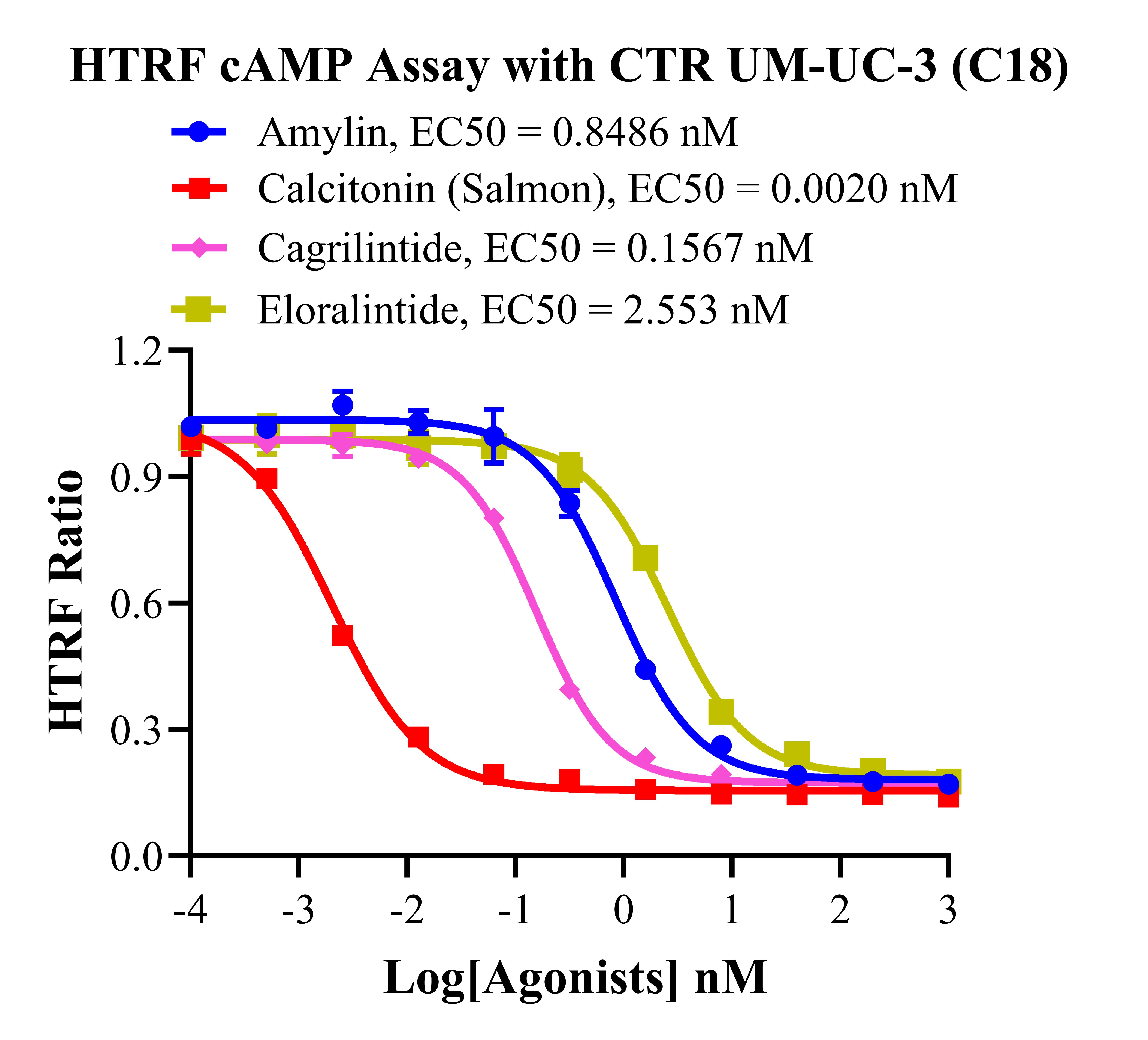 CTR UM-UC-3 細胞藥靶模型很好的模擬了體內(nèi) CTR 的信號轉(zhuǎn)導過程,原理見下圖所示。![]() Figure 1. CTR UM-UC-3 細胞模型原理圖 |