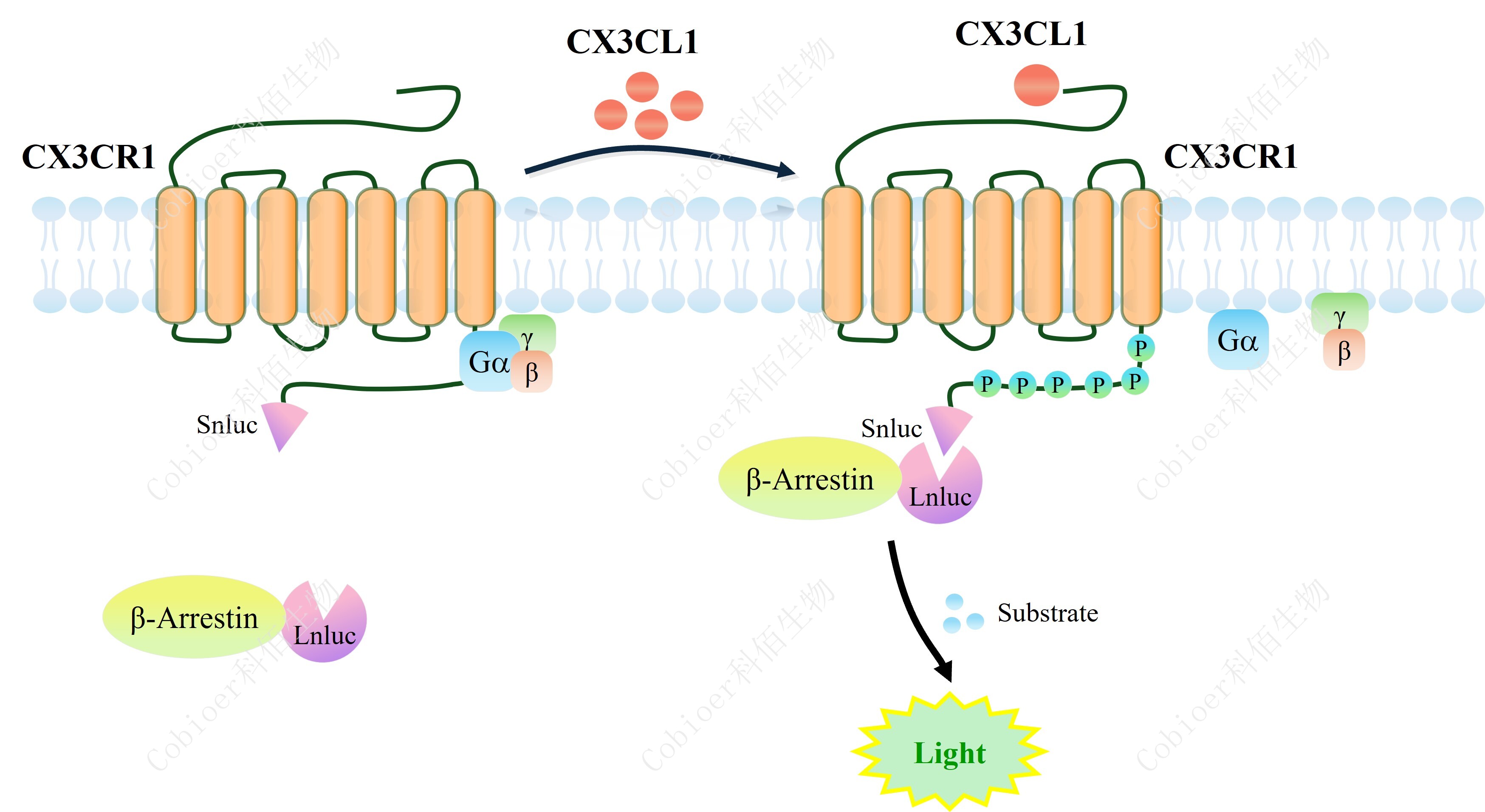 ![]() Figure 1. CX3CR1 β-Arrestin CHO 細(xì)胞模型原理圖