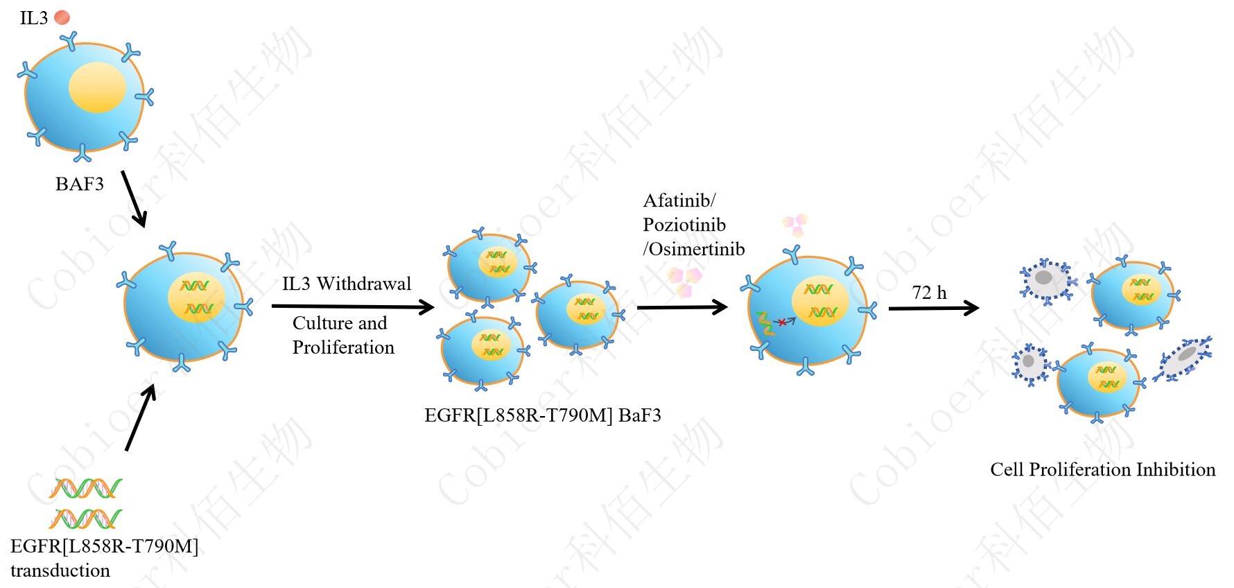 BaF3(小鼠原 B 細(xì)胞)的生長(zhǎng)和增殖需要 IL-3 的維持。通過引入各種表達(dá)激酶的基因, 能作為 BaF3 的驅(qū)動(dòng)基因,讓 BaF3 不再依賴 IL-3 而增殖,進(jìn)而激酶基因成為 BaF3 增殖依 賴的驅(qū)動(dòng)基因,用于評(píng)估小分子藥物對(duì)激酶的靶向抑制作用,原理及流程見下圖所示。