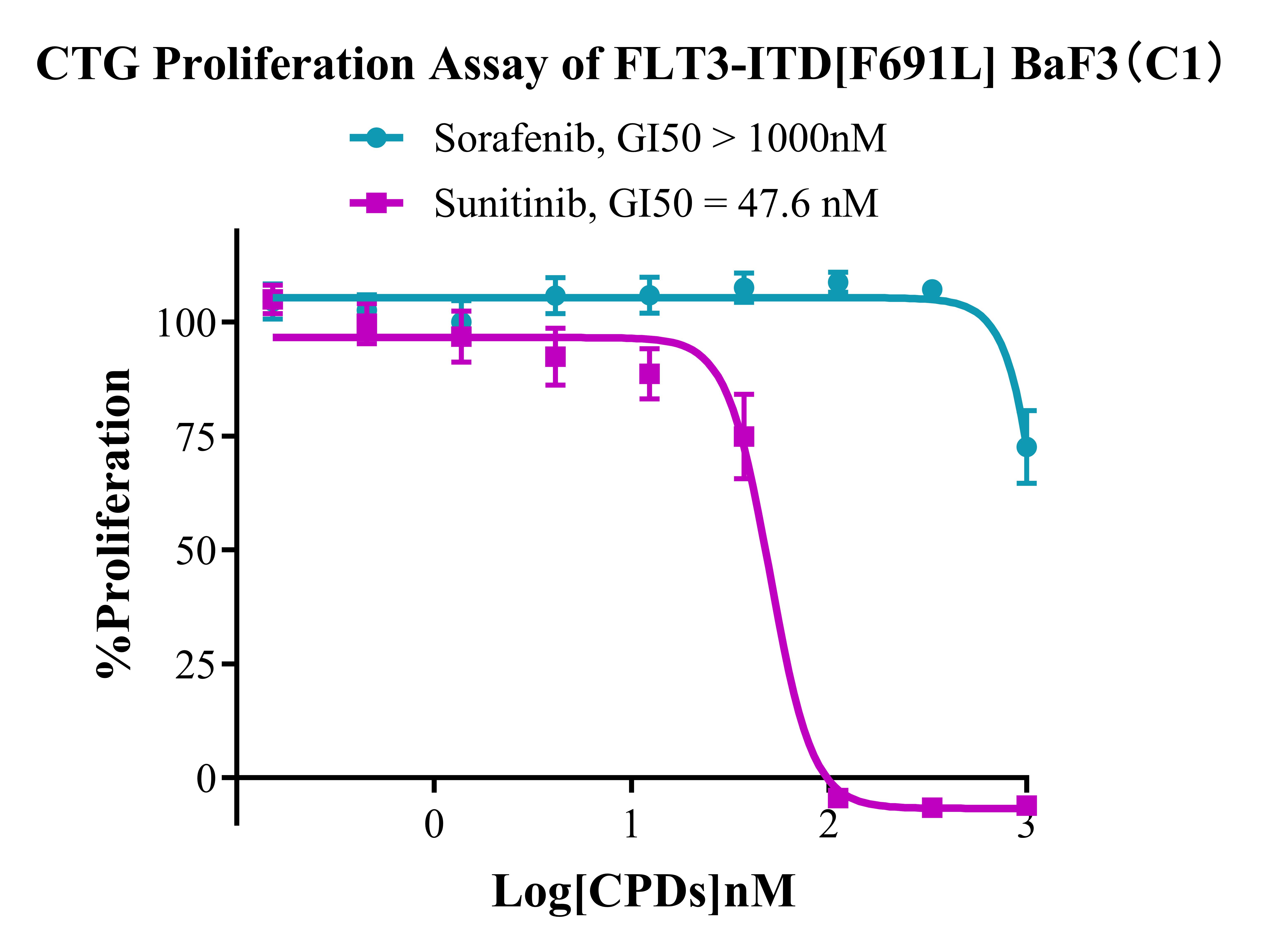 Figure 5. CTG Proliferation Assay of FLT3-ITD [F691L] BaF3(C1). |