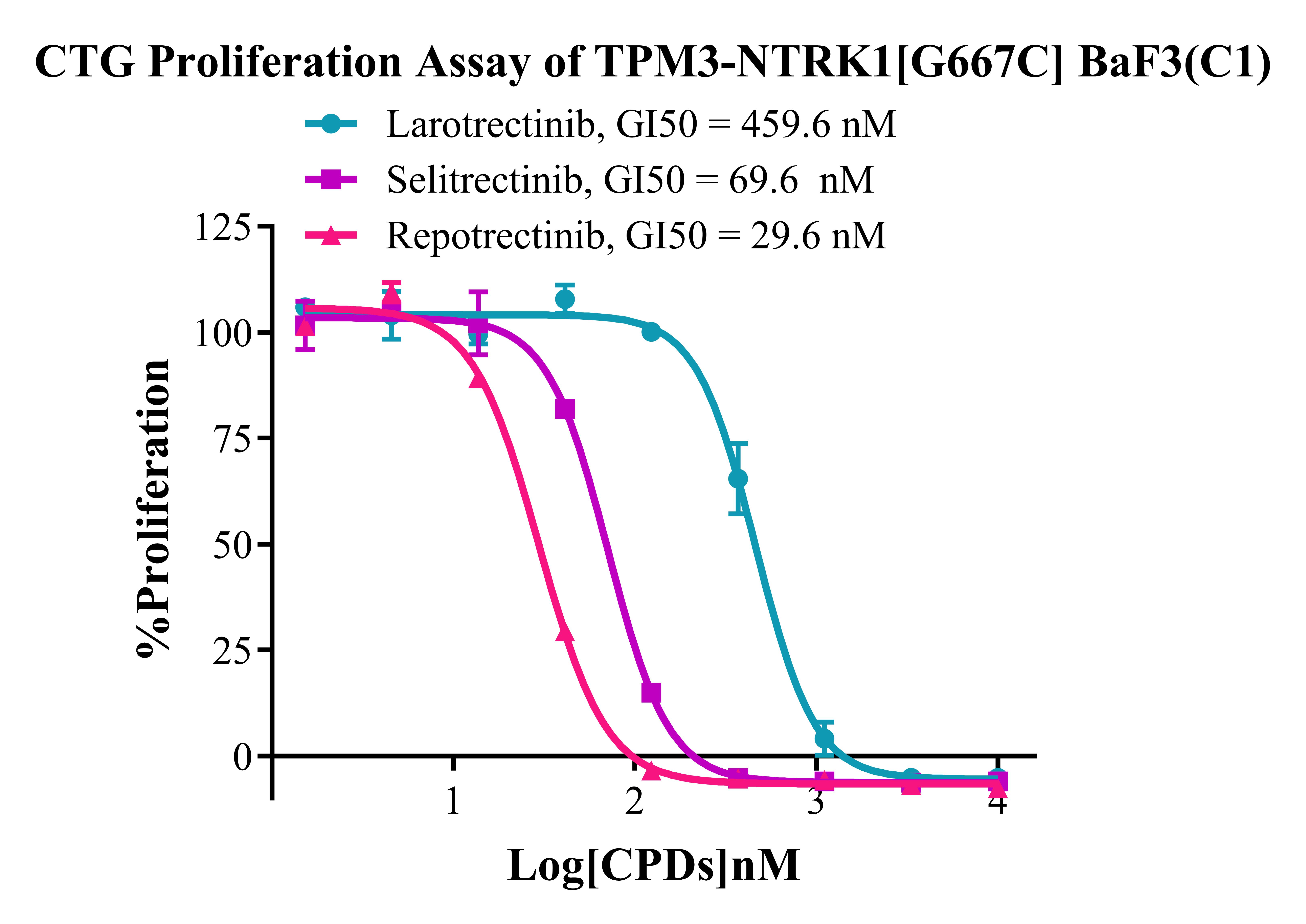 Figure 5. CTG Proliferation Assay of BaF3 TPM3-NTRK1 [G667C] BaF3 (C1). |