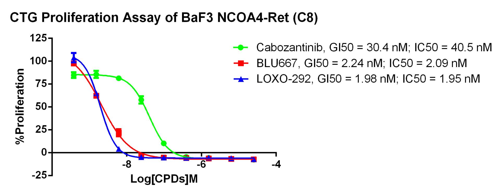 Figure 2. CTG assay of for NCOA4-RET/BaF3 Stable Cell Line. |
