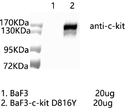 | c-Kit[D816Y] BaF3 藥靶細(xì)胞,通過轉(zhuǎn)導(dǎo)突變狀態(tài)的 c-Kit[D816Y] 基因到 BaF3 細(xì)胞系中,穩(wěn)定表達(dá)人突變形態(tài)下的 c-Kit[D816Y] 基因。