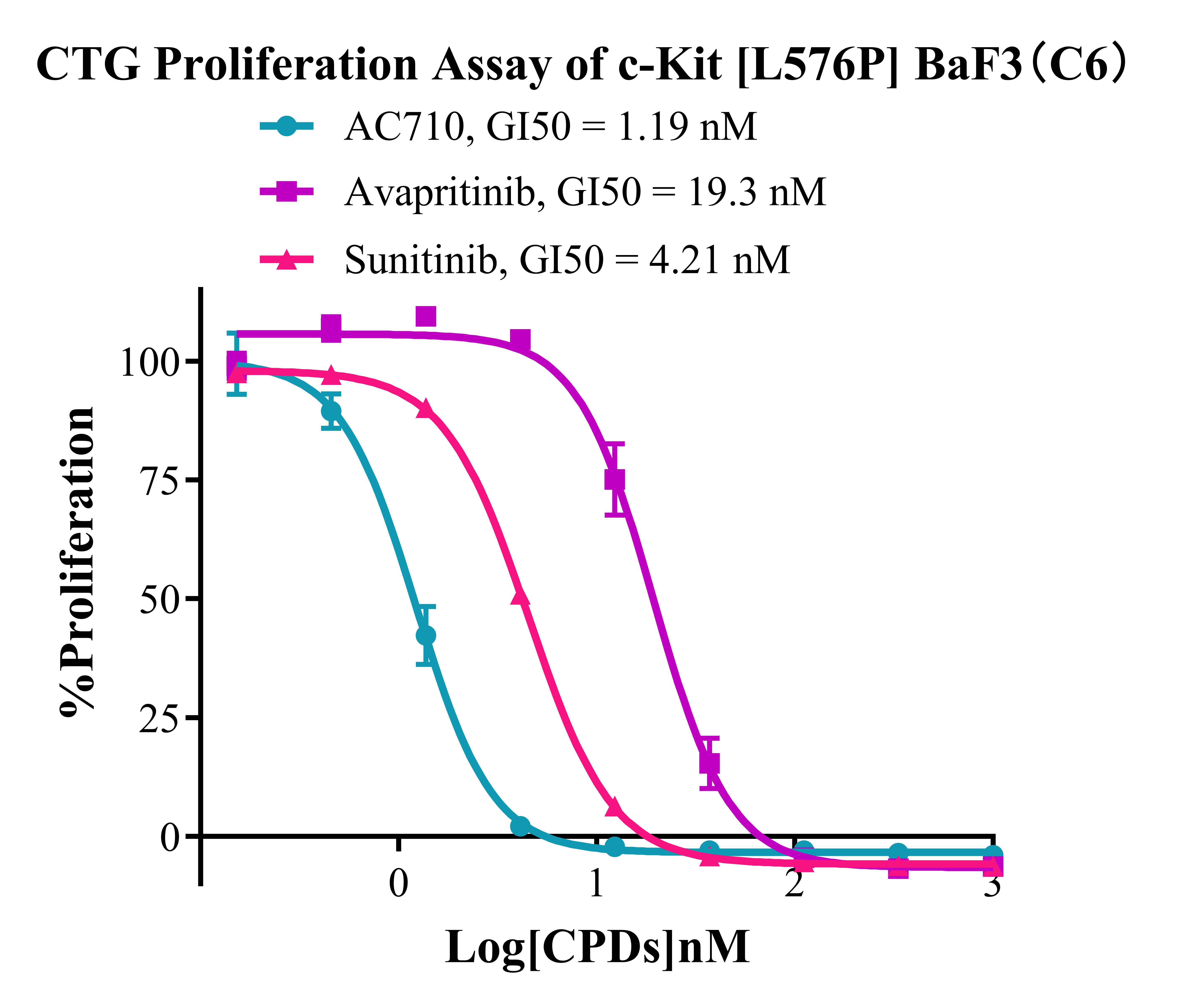 c-Kit[L576P] BaF3 藥靶細胞,通過轉(zhuǎn)導(dǎo)突變狀態(tài)的 c-Kit[L576P] 基因到 BaF3 細胞系中,穩(wěn)定表達人突變形態(tài)下的 c-Kit[L576P] 基因。