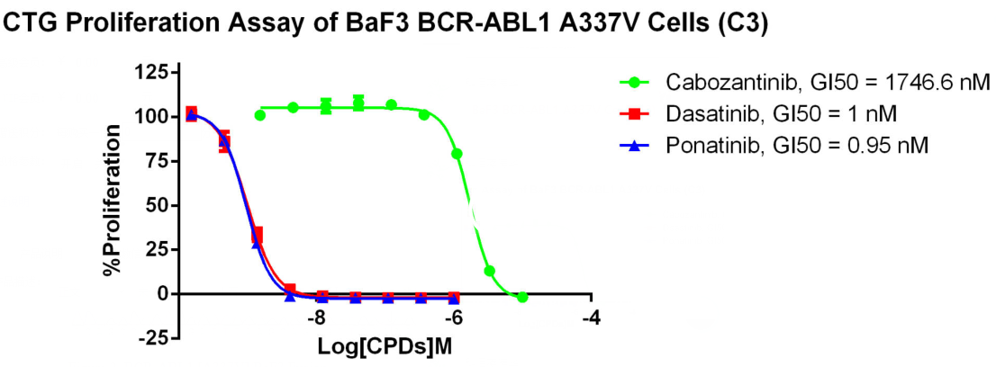Figure 4. CTG Proliferation Assay of BaF3 BCR-ABL1 A337V Cells (C3).