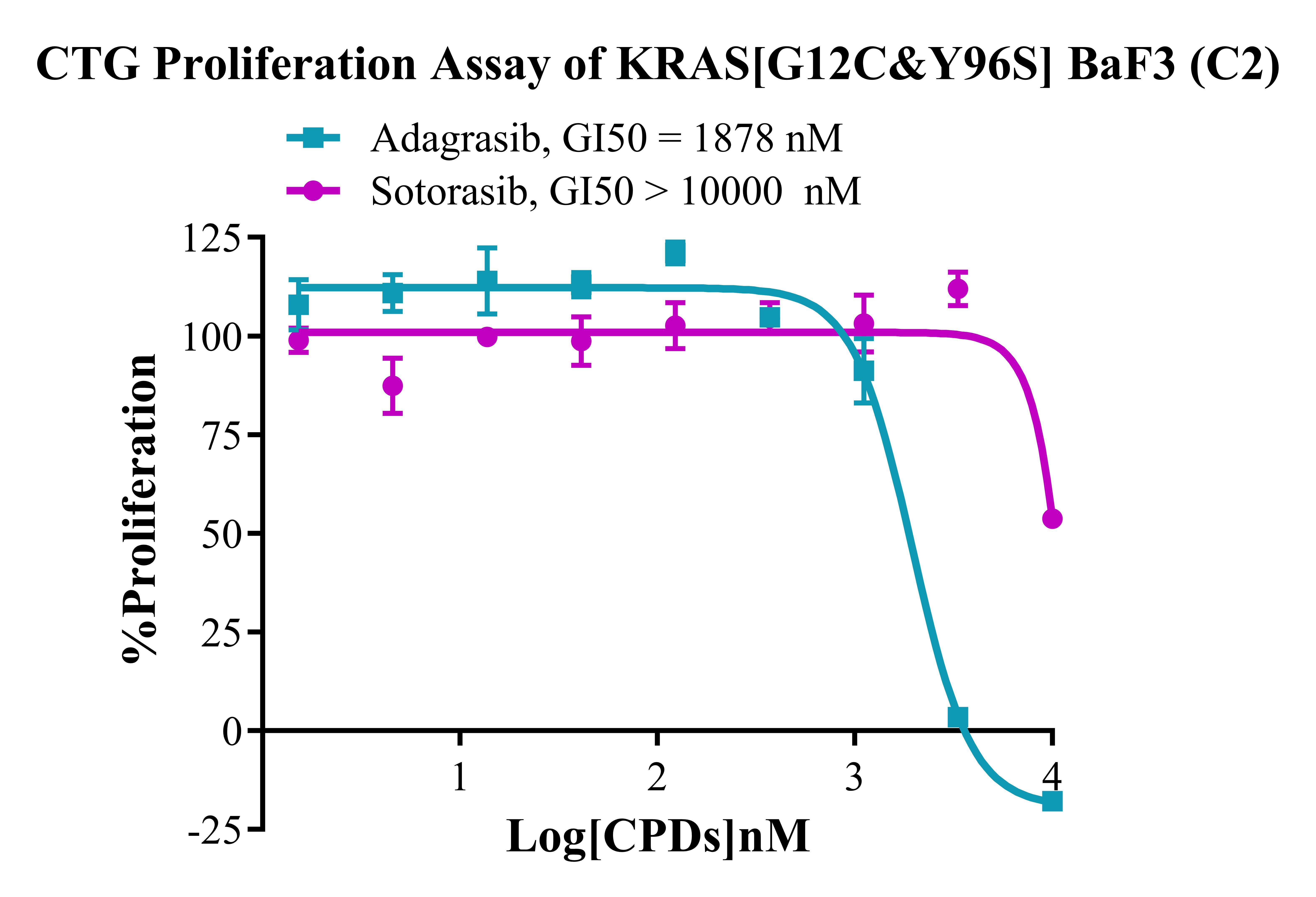Figure 2. CTG Proliferation Assay of KRAS[G12C&Y96S] BaF3(C2). |