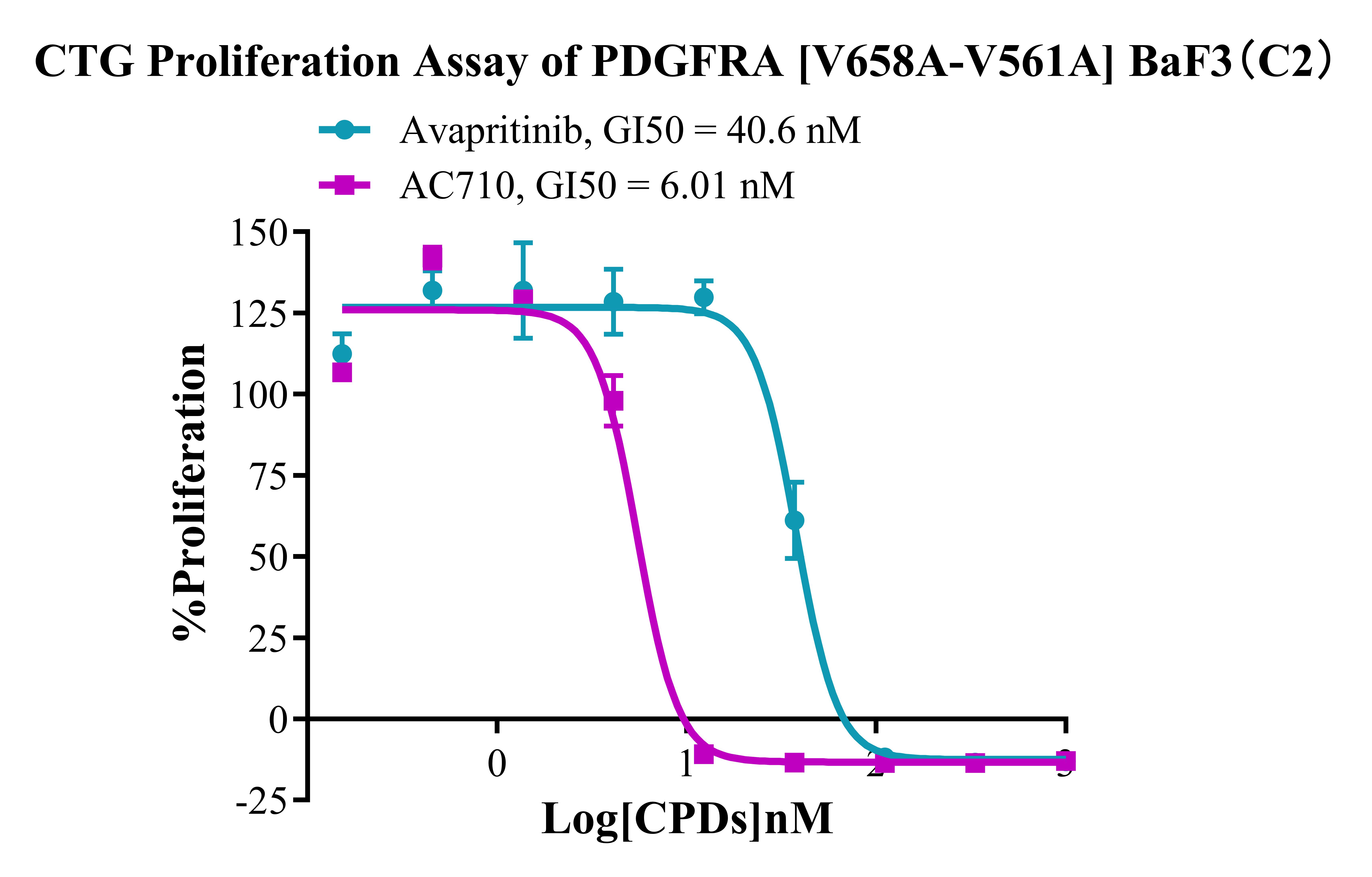 Figure 5. CTG Proliferation Assay of PDGFRA [V561A-V658A] BaF3(C2). |