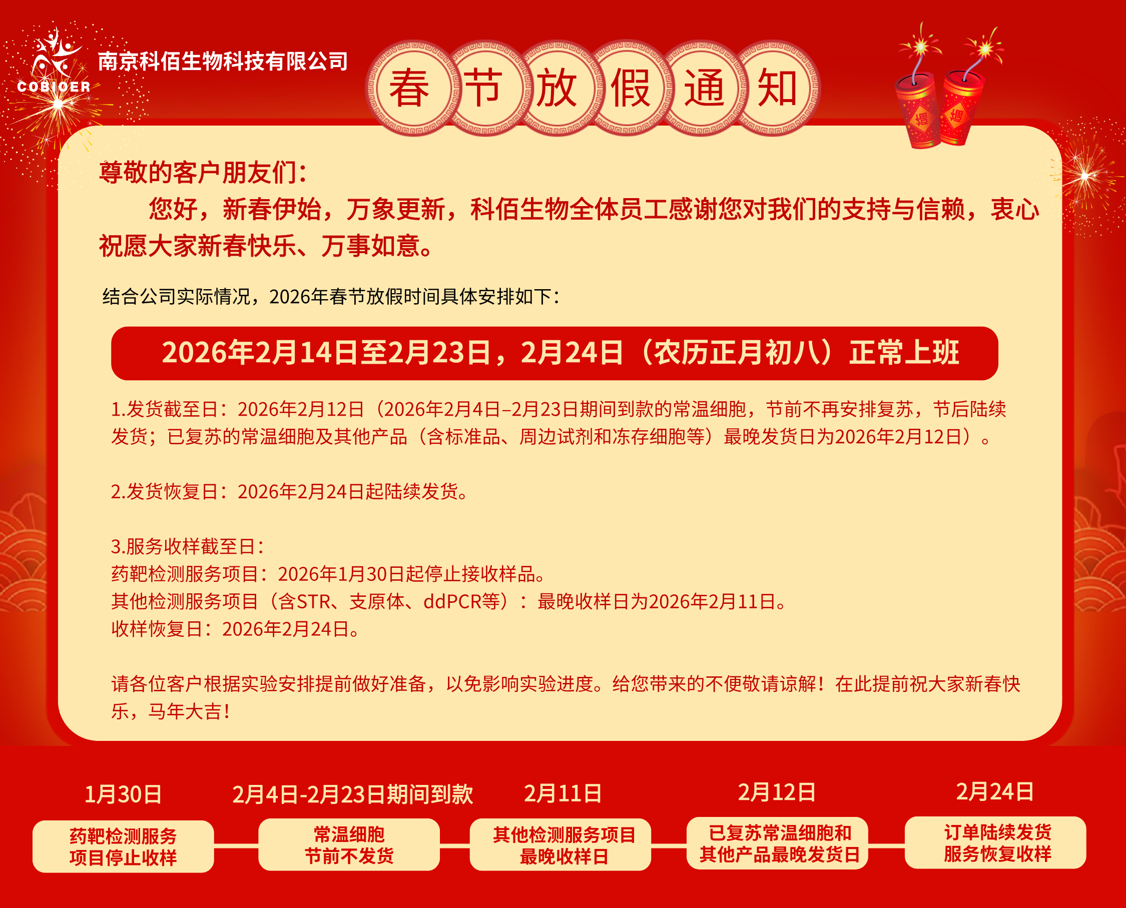【通知】科佰生物春節(jié)放假&發(fā)貨通知