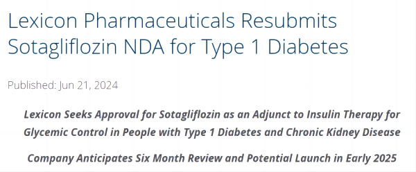 6月21日,Lexicon宣布,在與FDA進(jìn)行多次互動并得到最近的反饋后,該公司已重新提交了索格列凈(sotagliflozin)的新適應(yīng)癥申請,作為胰島素治療的輔助藥物,用于1型糖尿病和慢性腎臟?。–KD)患者的血糖控制。