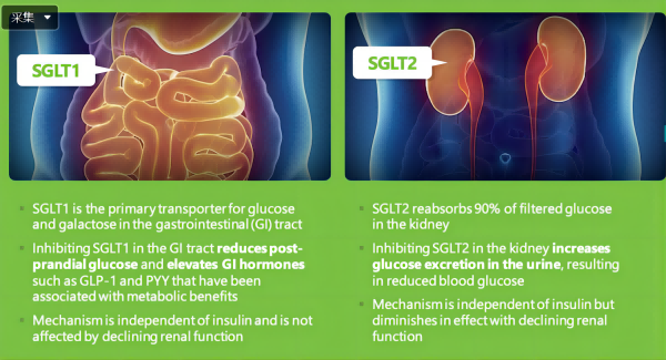 Sotagliflozin是口服的鈉-葡萄糖協(xié)同轉(zhuǎn)運(yùn)蛋白1型和2型(SGLT1和SGLT2)的雙重抑制劑。SGLT1負(fù)責(zé)胃腸道中的葡萄糖吸收,對SGLT1的抑制可抑制消化道對葡萄糖和半乳糖的吸收;而SGLT2負(fù)責(zé)腎臟對葡萄糖的重吸收,對SLGT2抑制則是減少腎小管對葡萄糖的重吸收。