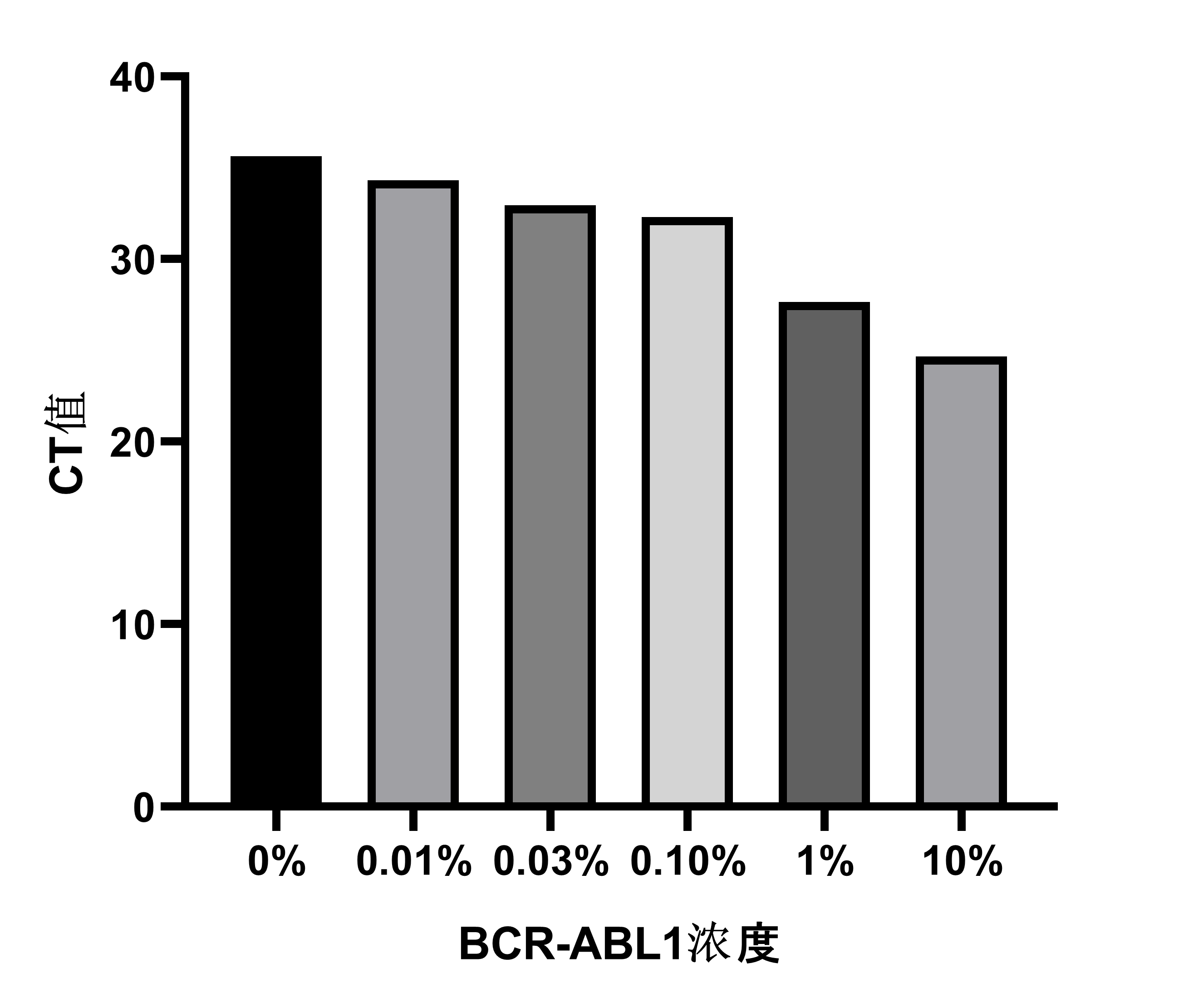 應(yīng)用描述:qPCR用于定量分析比較不同占比的BCR-ABL1標(biāo)準(zhǔn)品