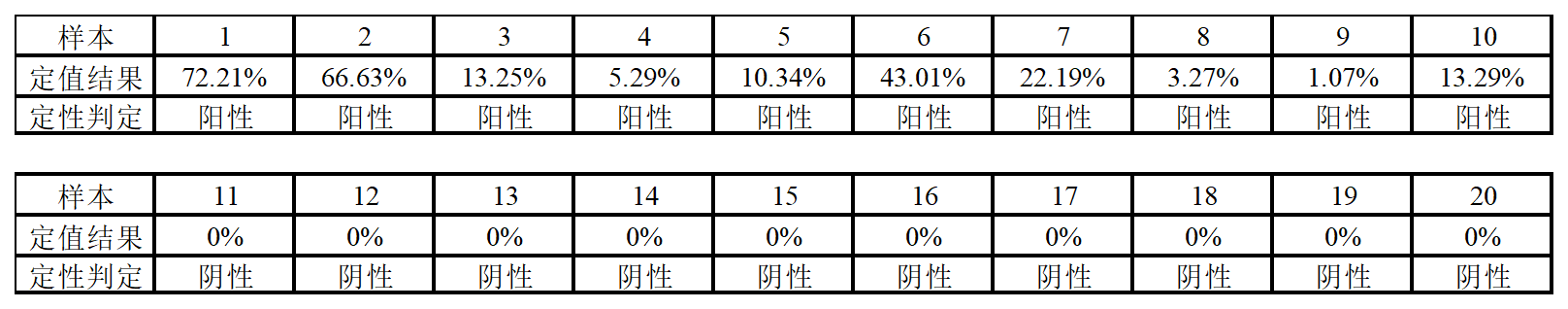 由上數(shù)據(jù)可見:選擇0.05%作為該檢測試劑盒的檢測限LOD。