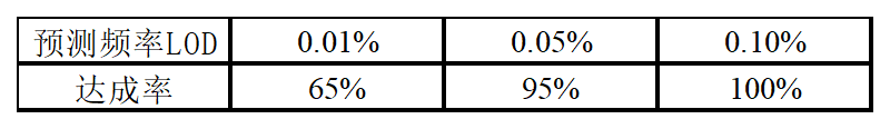 0.05%的誤差范圍是±50%,就是0.025-0.075%,因此我們選擇3個點,探尋LOD分別為 0.010%、0.050%、0.100%,要求95%檢出。