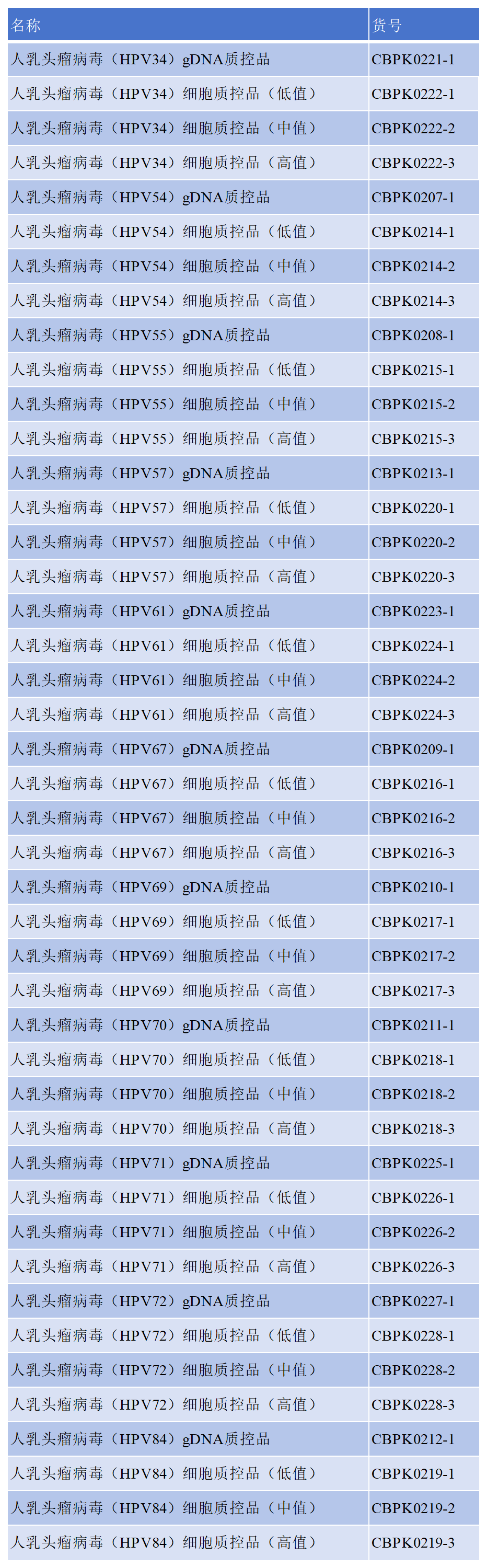 前期,科佰生物已經(jīng)推出了18種高危型和9種低危型的HPV分子診斷標準品,詳情可以點擊【免費試用】人乳頭瘤病毒HPV核酸檢測標準品新品上線,可申請免費試用 查看