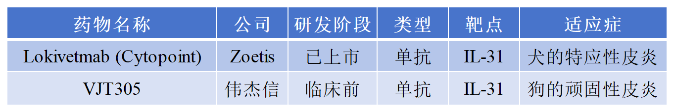 目前,針對(duì)犬類IL-31的藥物多集中于瘙癢性和炎癥性皮膚病,尤其是特應(yīng)性皮炎(AD)。