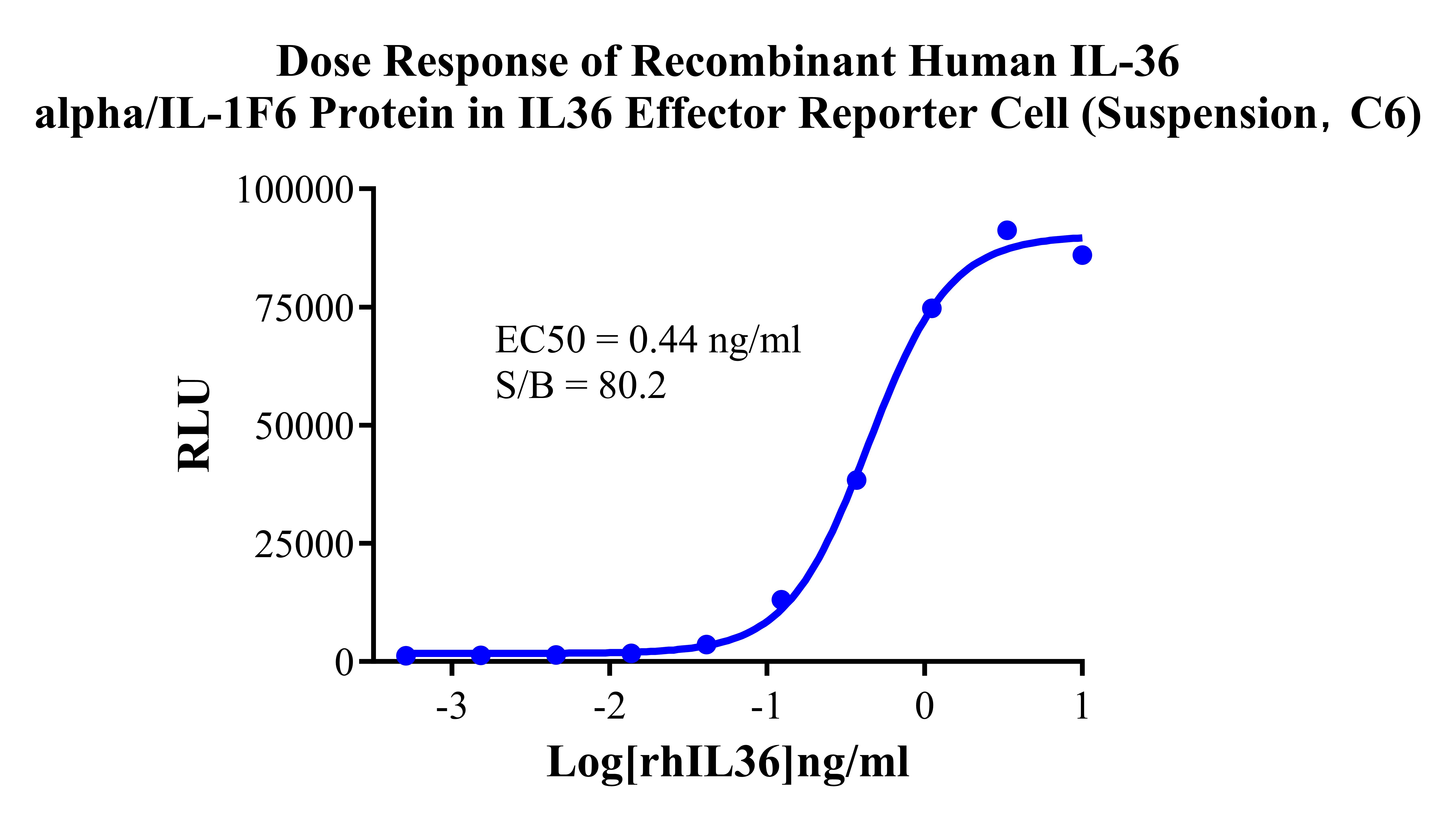Figure 2. Dose Response of Recombinant Human IL-36 alpha/IL-1F6 Protein in IL36 Effector Reporter Cell(Suspension, C6).